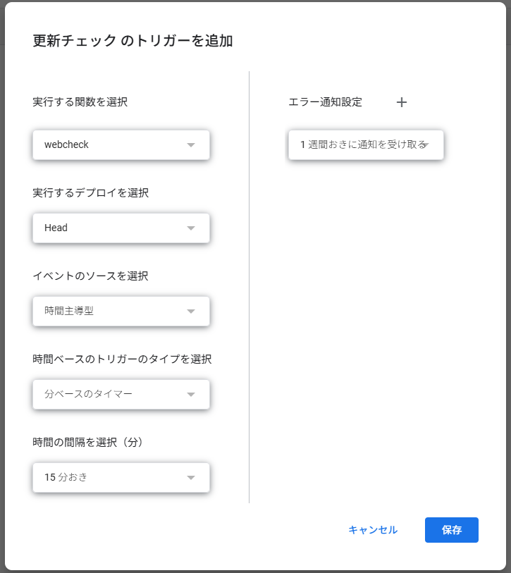 トリガーが設定されるので、あとは実行されるのを待ちます。